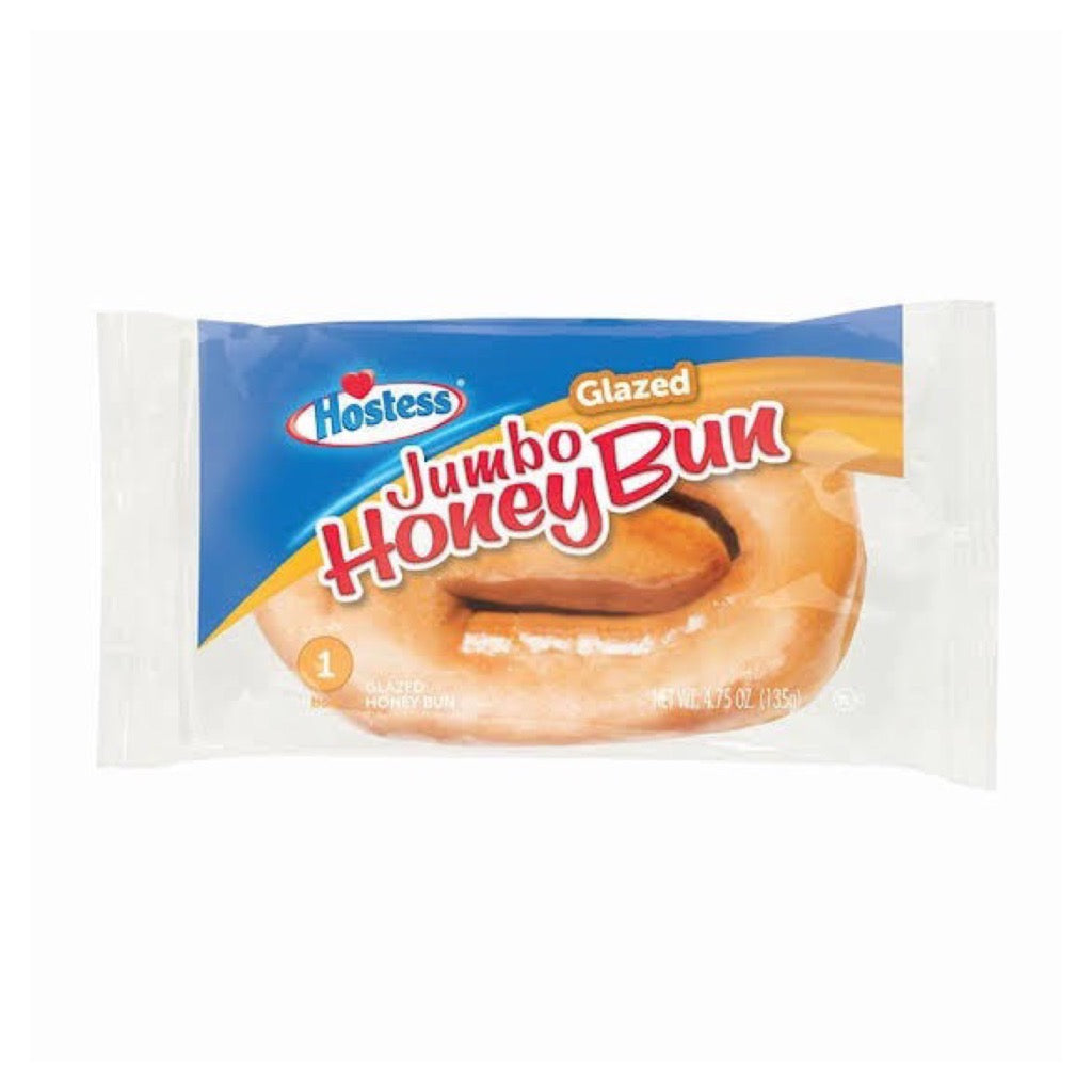 Indulge in a sweet treat with Hostess' Jumbo Honey Bun. Enjoy a 135g bun coated with a delicious glaze, perfect for an irresistible snack. Savor the irresistible aroma and delight in this treat's sugary goodness!