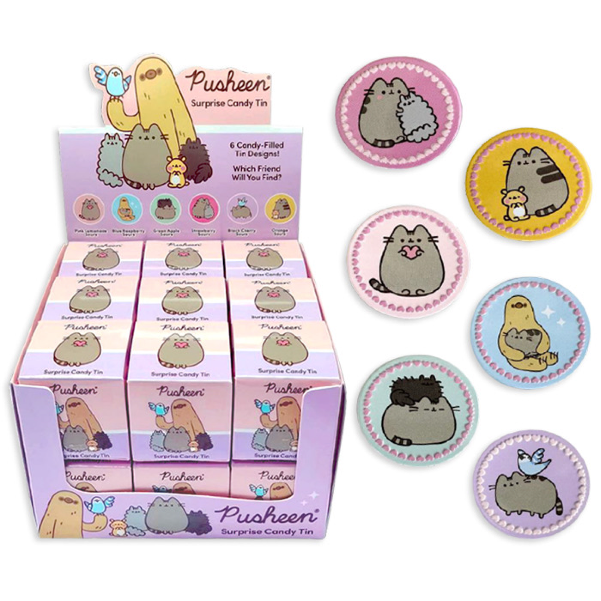 Bring home a new Pusheen friend with every surprise candy tin! Each box features a unique Pusheen pal design and is filled with delicious fruit-flavored candies. Enjoy the sweet treats while collecting the full set of adorable characters—because who says surprises can’t be tasty too?