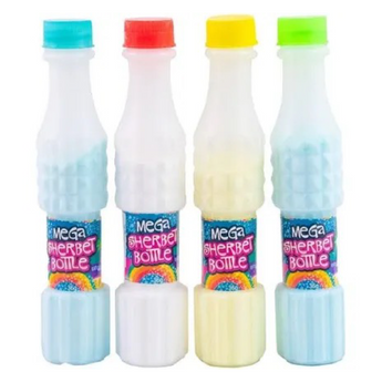 Mega Sherbet Bottle, now twice the size! Contains 6 classic flavours (chosen randomly) including cola, orange, blueberry, strawberry, apple, and lemon. Quench your cravings and satisfy your sweet tooth.
