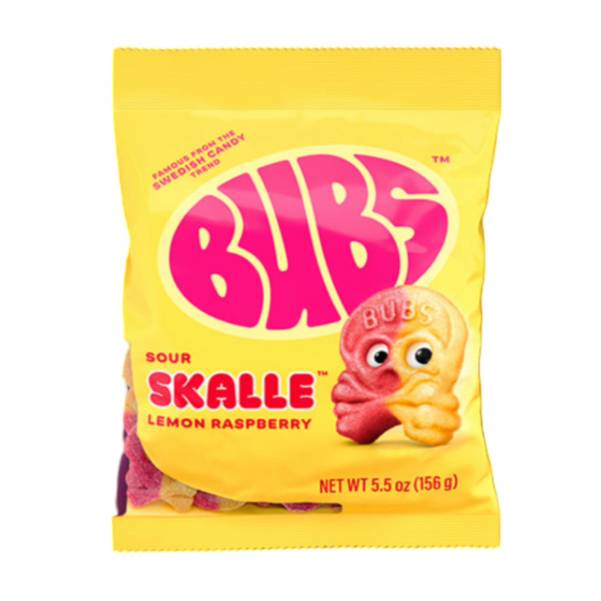 Bubs Sour Lemon Raspberry Skalle Skulls 156g (Swedish)